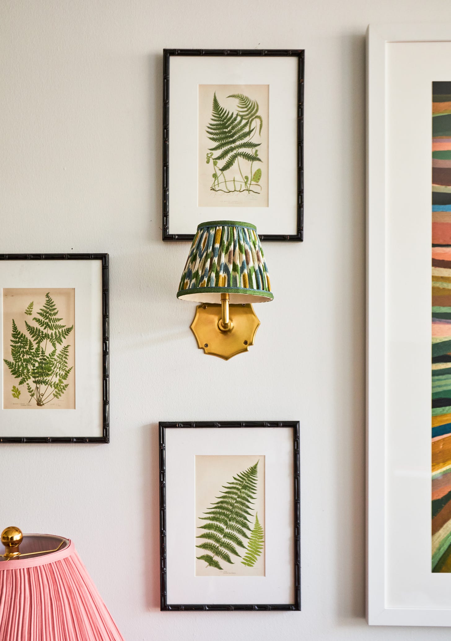 Pooky’s collection ranges from 6” to 20” shades in the most exquisite patterns and colors, and their recent collaboration with GP & J Baker is pure perfection. I used their blue-and-green ikat shade for my living room in my Dumbo apartment, where it pulls together all the colors of the space beautifully. The shade sits atop a cordless table lamp from Pooky, gifted to me at the event, which has been a game-changer for rental living.
